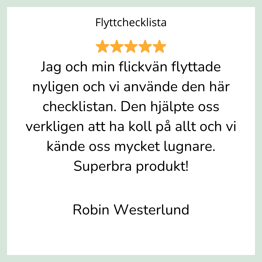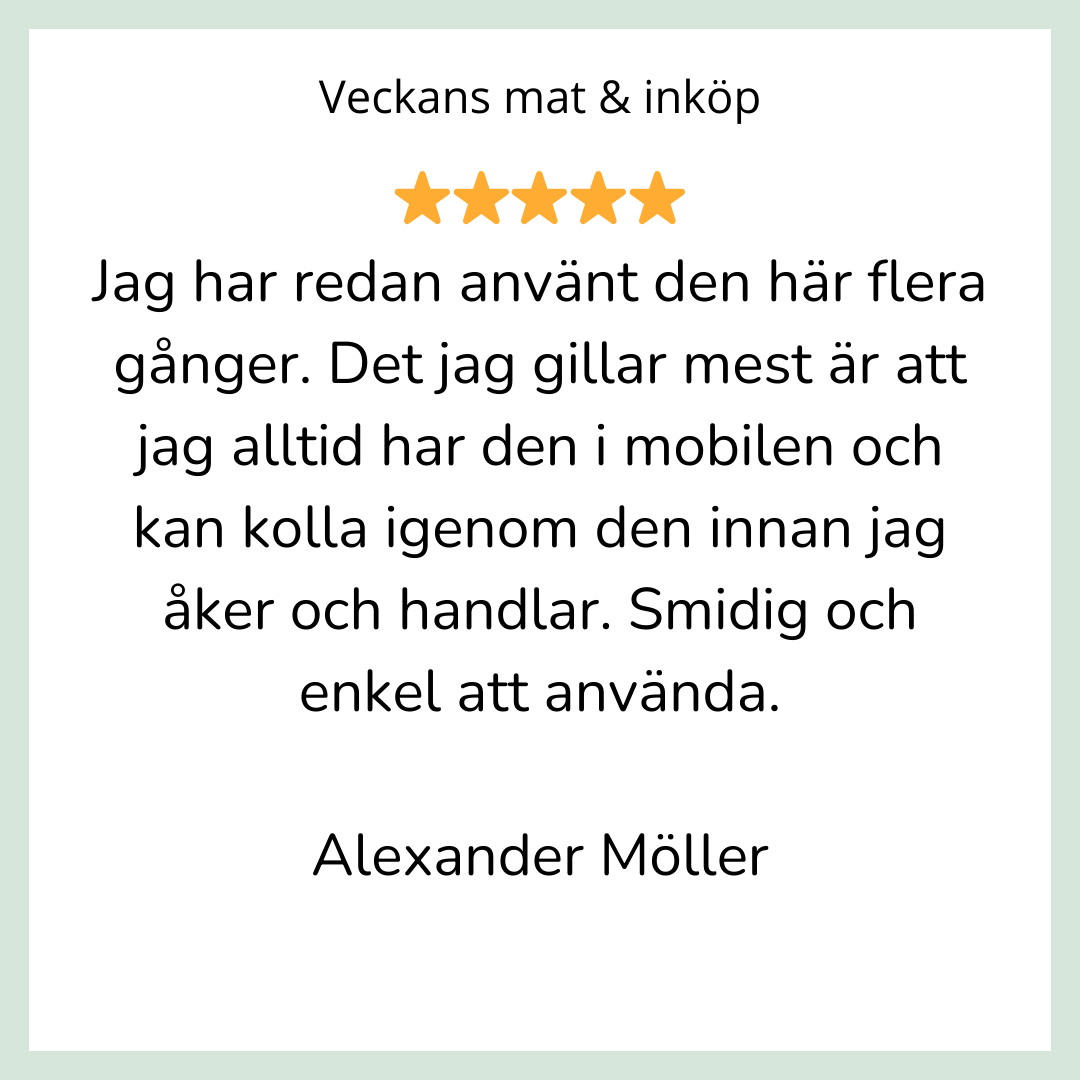 Resepacklista • Månadsbudget • Flyttchecklista • Veckans mat & inköp